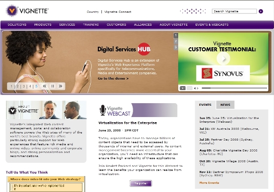 Vignette’s leading Web content management and delivery products combined with Omniture SiteCatalyst® helps deliver increased value through analysis of content and design of your next generation Web solution.