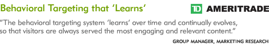 - Individual visitor and click scoring allows targeted offers to be served based on a visitor's unique and current interests