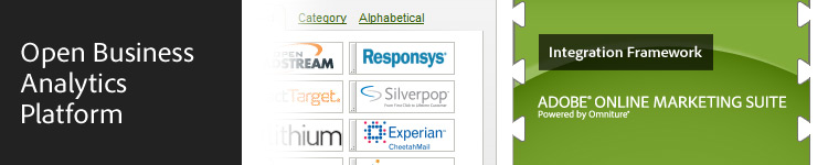Independent software providers, advertising agencies and individual developers are continually innovating to meet the online business analytics requirements of their customers. Developers can integrate and extend Adobe's suite of online marketing applications, powered by Omniture®, through web services programming interfaces and software development kit, taking full advantage of a secure, reliable and scalable business analytics platform.