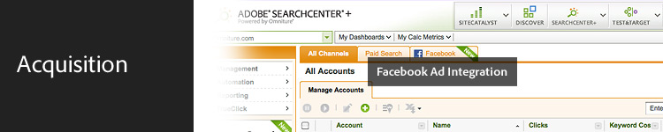 Search marketers spend billions each year to acquire new customers across an expanding group of channels—search, display, email, mobile, video—yet lack a systematic way to determine how to optimize their investment in visitor acquisition. Adobe® SearchCenter+, powered by Omniture®, empowers marketers to optimize SEO and SEM acquisition strategies that maximize the return on online ad spend.