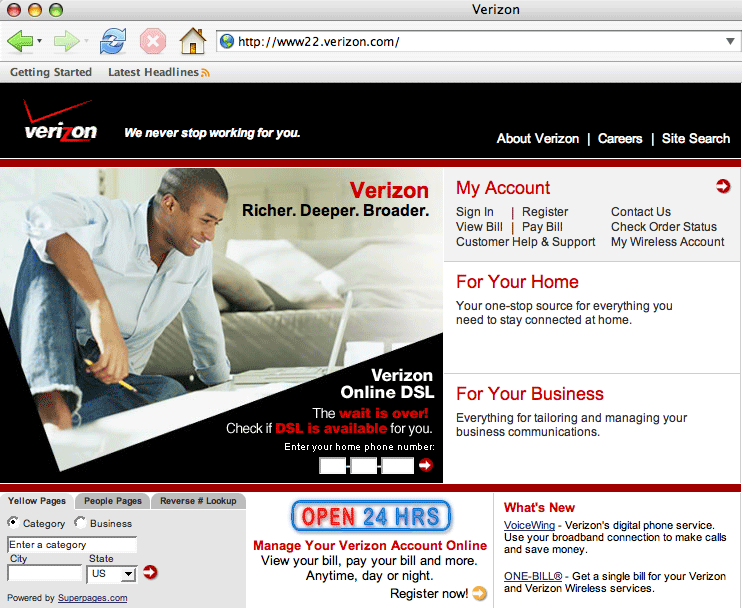 But the Verizon homepage, predictably, includes no offer and only mentions DSL peripherally.