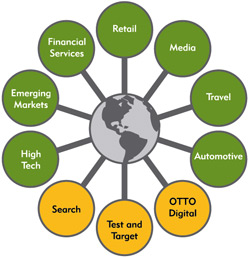 We have over 120 consultants worldwide with teams dedicated to most major industries, including Retail, Media, Financial Services, High-Technology, Travel, and Automotive. We have cross-industry teams focused on Search Engine Marketing, and Test and Behavioral Targeting and our Adobe Consulting Digital Group team are the foremost experts in data-driven Creative Optimization.