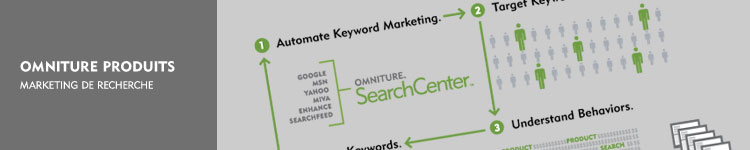 Omniture SearchCenter vous permet de gagner du temps et d'affiner votre stratégie MMR (marketing par moteur de recherche). Dans une interface conviviale, notre application permet de croiser les mesures des moteurs de recherche (clickthrough, couts, etc..) avec des données de types comportementales ou de conversions. .