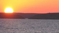 De la plage qui nous sert de jardin pour la nuit, le jour décline avec un voile blanc dans le ciel… Que se passe-t’il ? Les étoiles demeurent normalement invisibles derrière les nuages ! Incompréhension, émerveillement. Au bout d’une demi-heure, le ciel se teinte de vert, de rose…